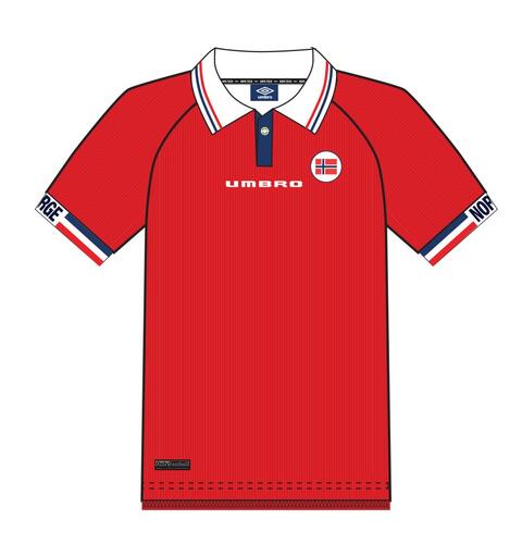 UMBRO Retro VM-98 Jr Rød 116 Retro fotballskjorte Norge
