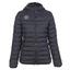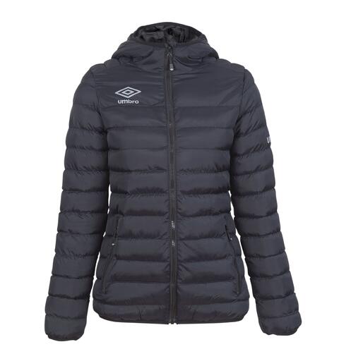 Klassisk vattert jakke med fast hette. Lommer i front med glidelås. Mulighet for å stramme nede på jakken for å få ønsket vidde.